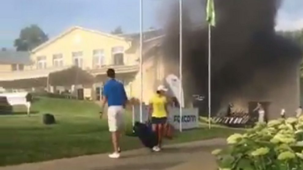 Several players tweeted footage of the clubhouse fire at Casa Serena Golf Club in the Czech Republic, with players scrambling to get away from the blaze, which started in the club storage area, and protect some of their belongings.