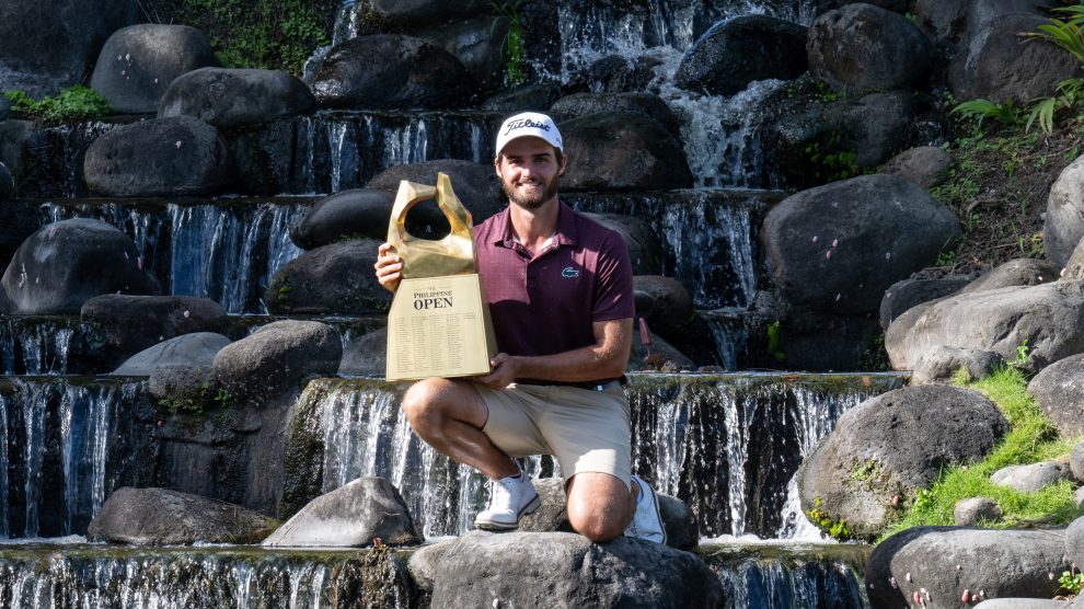 MANILA, PHILIPPINES: Julien Sale of France pictured with the winner’s trophy on Sunday, January 26, 2025 after Round Four of the Smart Infinity Philippine Open at the Manila Southwoods Golf & Country Club, Masters Course. The US$500,000 event is staged from January 23-26, 2025. Picture by Jason Butler/Asian Tour.