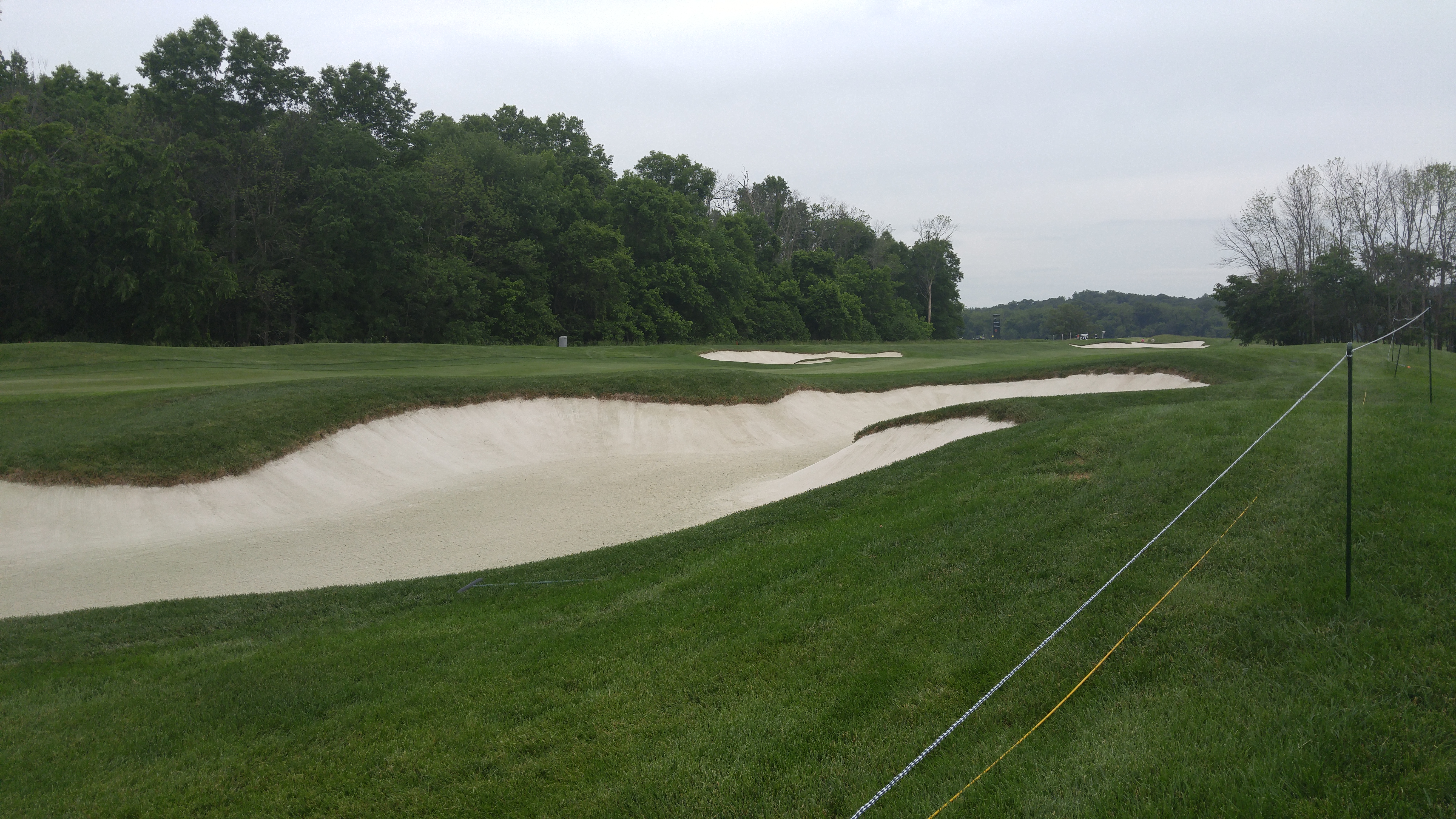 The second par 5 on the back is all about the tee shot. The landing area is tight, with nasty forest to the left and claustrophobia-inducing bunkering to both sides.