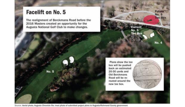 The lengthening of the fifth hole represents the first man-made change to the course since 2006, when six holes were lengthened. There has been talk for several years now of expanding the 510-yard par-5 13th hole into land purchased from neighboring Augusta Country Club. However, that change hasn't been made.