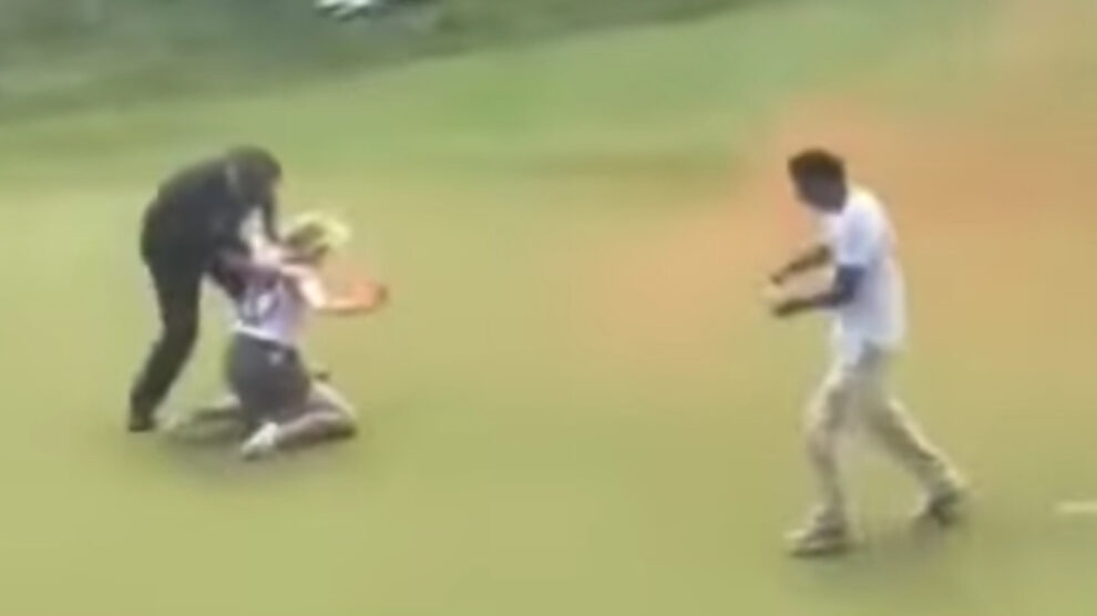 The protestors, representing a group called Extinction Rebellion, were throwing what appeared to be a dry paint-like surface onto the par-4 closing green at the tournament host site, as thousands of fans in the surrounding amphitheater booed and jeered. Police officers and other tournament security subdued and arrested the protestors quickly, removing them from the scene. However, the putting surface had red and white covering them in spots, while Scottie Scheffler, Tom Kim and Akshay Bhatia looked to finish off the PGA Tour Signature event.